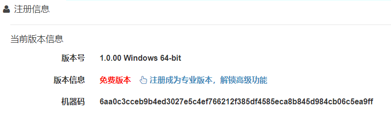 这里再解释一下为什么专业版本不是使用注册码的形式,而是使用和机器码绑定的形式。(这样反而觉得专业版还不如免费版使用方便,
