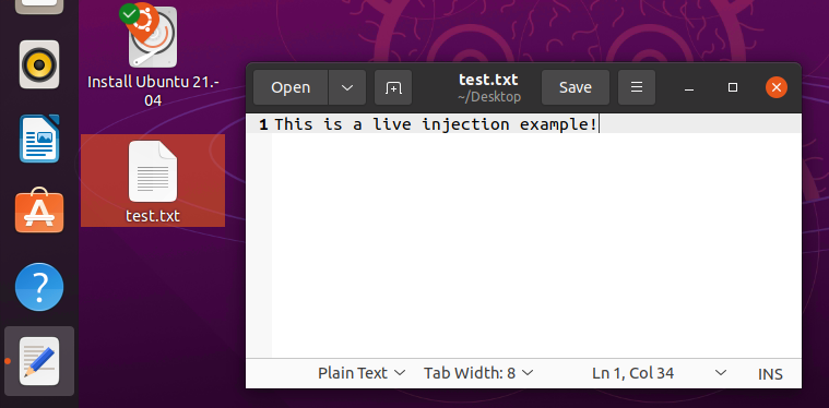 我在 sysroot 目录下放了一个 home/ubuntu/Desktop/test.txt 文件作为例子,相当于把 test.txt 文件注入到桌面上。