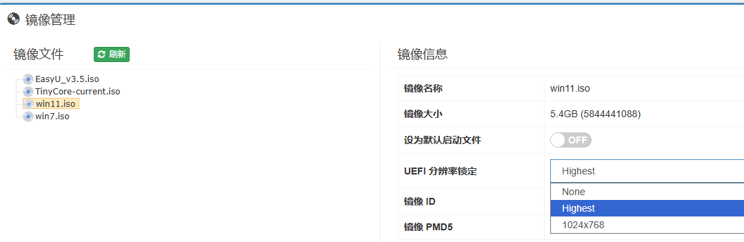 为了解决这个问题,从 1.0.25版本开始,针对ISO文件增加了一个 UEFI模式分辨率锁定 的选项。如下图所示: